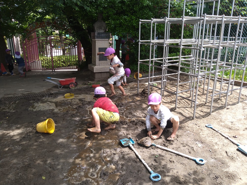 好きな遊び 好きなことにじっくり関わります この日は裸足で外遊び👣